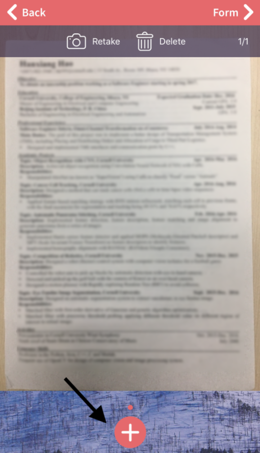 One of the most common questions we get from our customers l is: “Can Rakuna Recruit app capture resume with multiple pages?” The answer is Yes! You can do this by utilizing our pink “plus-icon” button at the bottom of the app to take snapshots of subsequent pages to capture all key information.