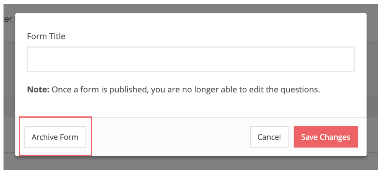 With forms that you no longer need, you can choose to archive them by opening the specific form, click “Edit Form” and then “Archive Form.” By doing this, the form will not be completely deleted but rather hidden from the list of published forms as well as stored in our system. To access and reactive archived form, please email support@rakuna.co for support.