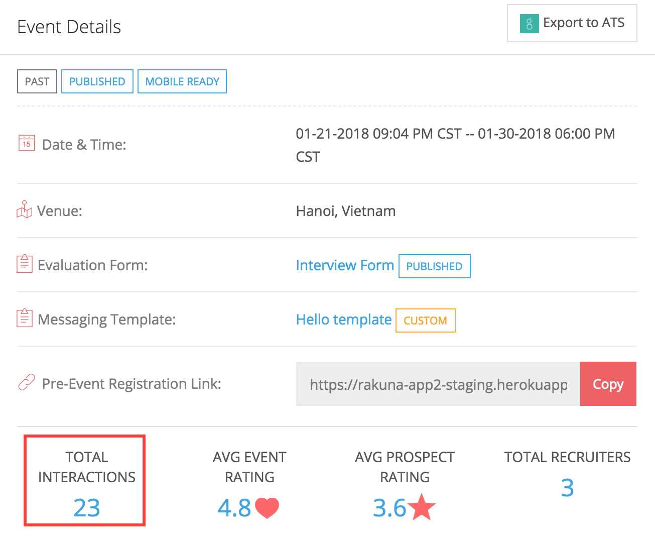 Automated Post-Event/Interview Email Messaging takes care of automated mass communication with all prospective candidates after an event or interview is over. With different templates, recruiter can send personalized emails to each prospective candidate to keep him or her updated throughout the recruiting process.
