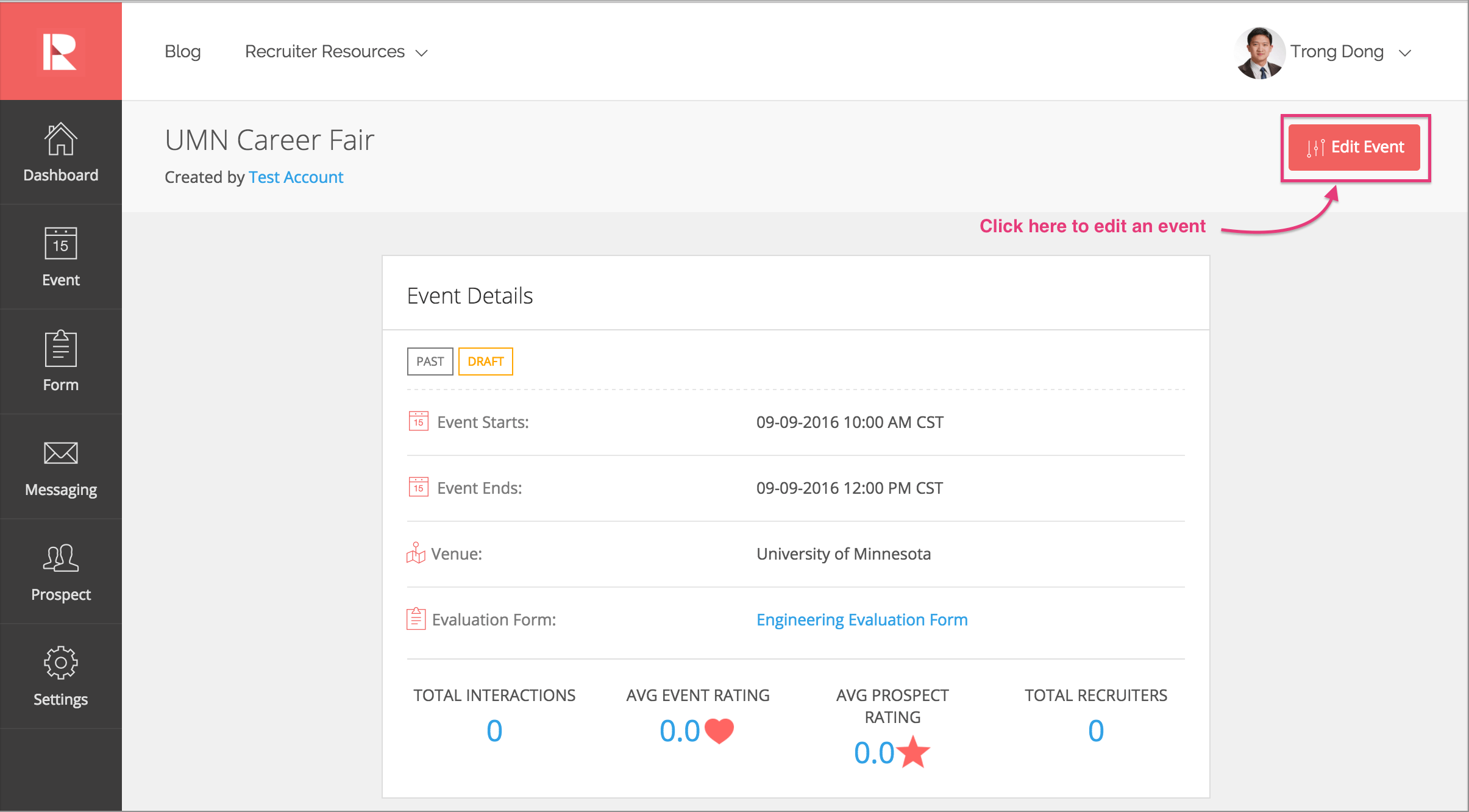 - Open the draft event (it has the yellow “Draft” tag) and click the red “Edit Event” button on the top right corner of the screen