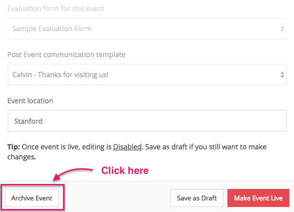 - Click “Save as Draft” to save changes or “Make Event Live” when the event is ready to be published