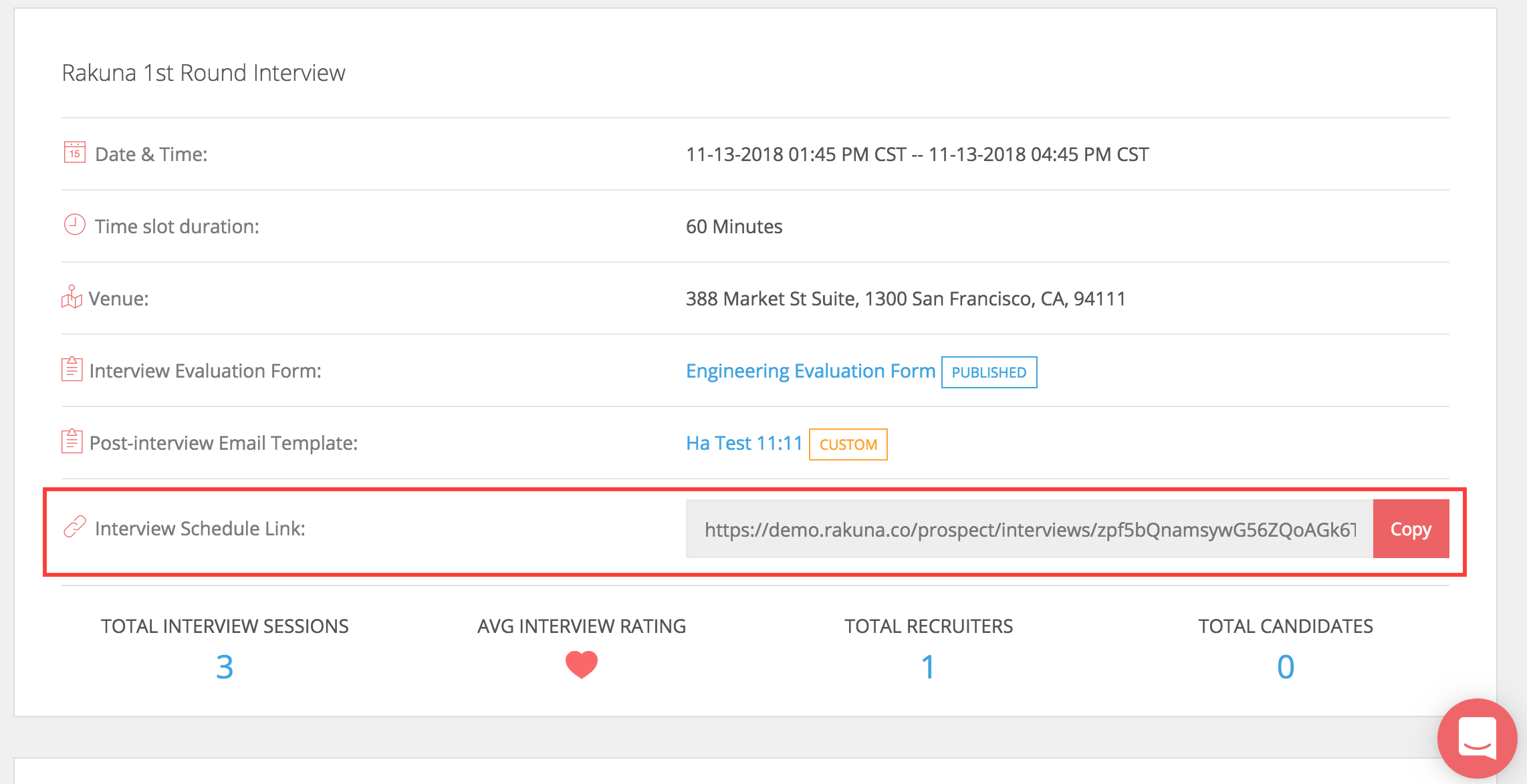 The Recruiting Coordinator can copy the Interview Schedule Link and integrate into their own event page.