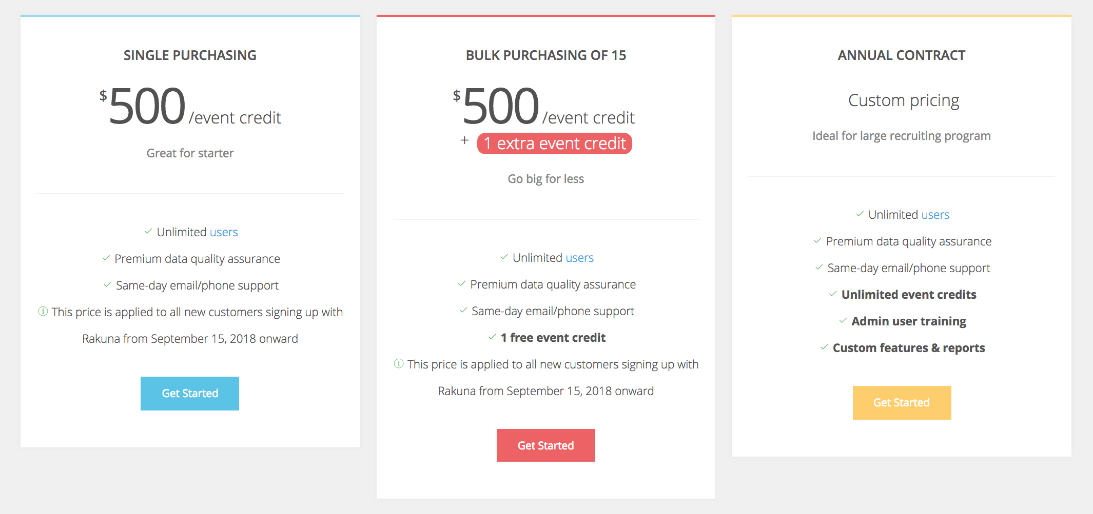 Annual subscriptions are a great way to save some cost if you have a large campus recruiting program. If your campus recruiting program grows and needs to move from per-event pricing plan to annual subscription, please contact support@rakuna.co with email subject: Opting for an Annual Subscription.